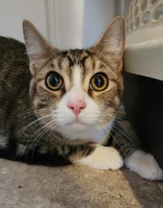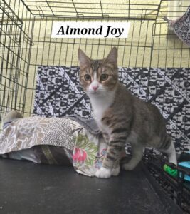Introducing Almond Joy, one of the 3 "Candy bar" male kittens (See also Snickers and Zero) Birthday estimated at 5/30/2025. Almond Joy is the quiet observer of the group, taking after his gentle mother. While initially shy, he is a sweet and sensitive boy who flourishes in a calm environment. He has good litter box manners and is neutered, vaccinated, FIV & FeLV negative and microchipped. Please consider making this sweet boy a member of your family maybe with one or both of his brothers Snickers or Zero. If interested, complete our online Adoption Application or contact Kornelia@blountcountyhumanesociety.org for more info.